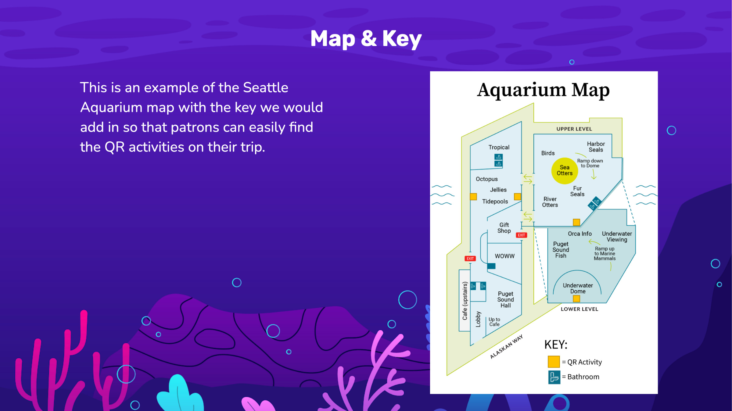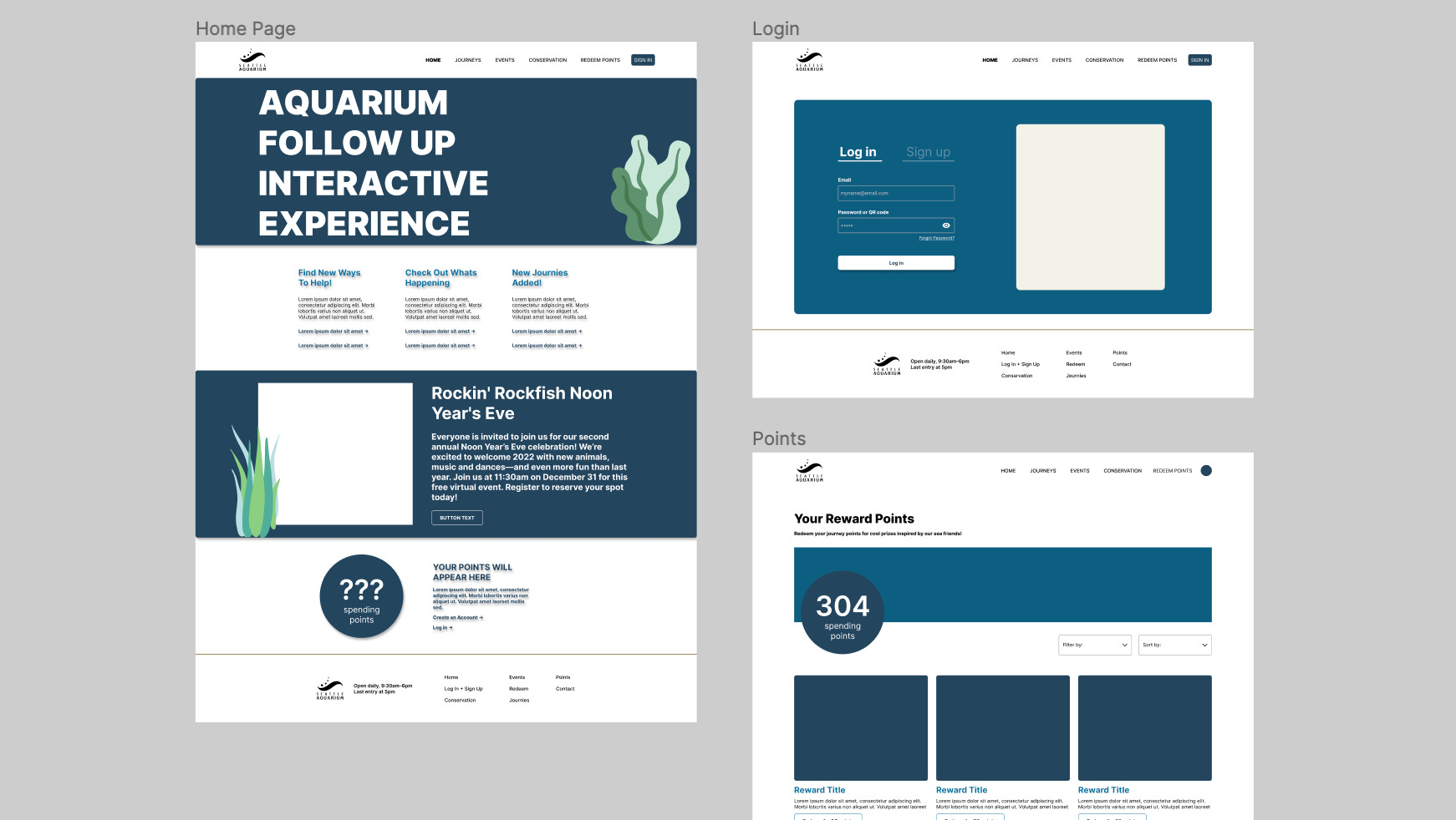 My team developed an in-person experience as well as an accompanying online website. The in-person experience works with the aquarium’s current set up so that it does not take away from the exhibits. Then the website is to help keep children engaged with the aquarium when they are at home. And any extra necessary materials to participate (like the passport) is provided by the aquarium to not add any extra financial strain on patrons of the aquarium.
